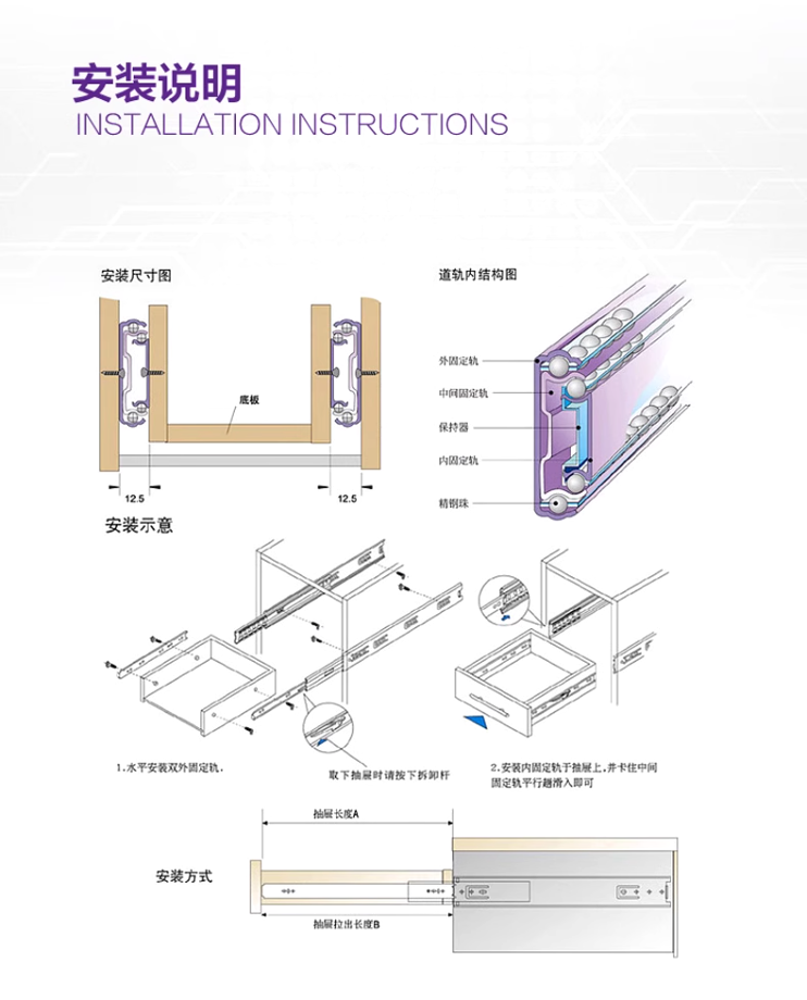 Varenavn | Tre seksjon demping stille buffer stålkule tykne skuffe lysbilder |