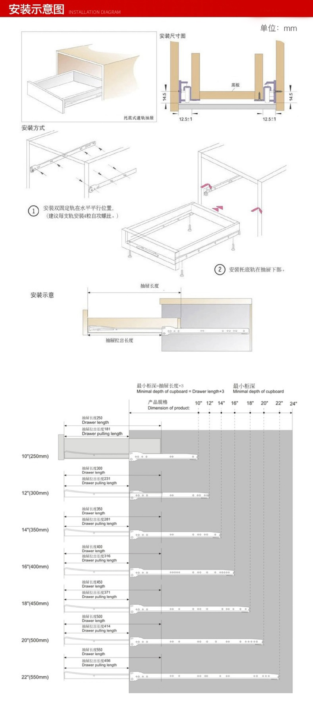 Lengde | 250mm/300mm/350mm/400mm/450mm/500mm/550mm |
