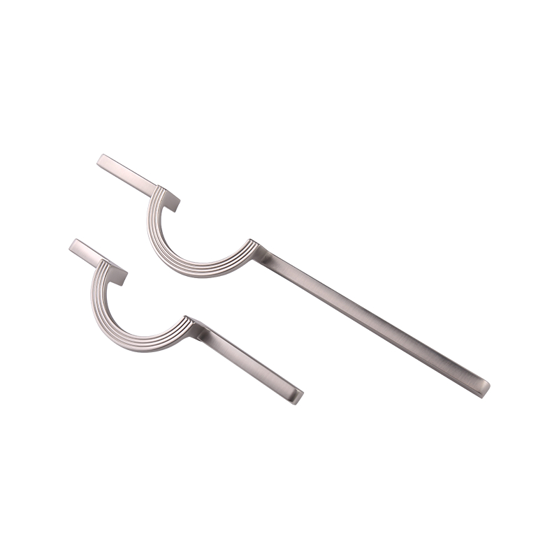 K635 96mm/256mm hull avstand Sinklegeringsskap dørhåndtak. Dette halvmåne møbelhåndtaket har en utsøkt generell design og moderat størrelse. Hullavstanden er en standard 96mm/256mm, noe som gjør den egnet for dørspaneler på markedet på markedet. Halvmåneformen er unik og fasjonabel, og bryter den monotone utformingen av tradisjonelle håndtak. Det er som en lys måne innebygd i skapdøren, og gir et snev av lysstyrke til kjøkkenområdet og gjør det generelle designet mer raffinert og elegant.