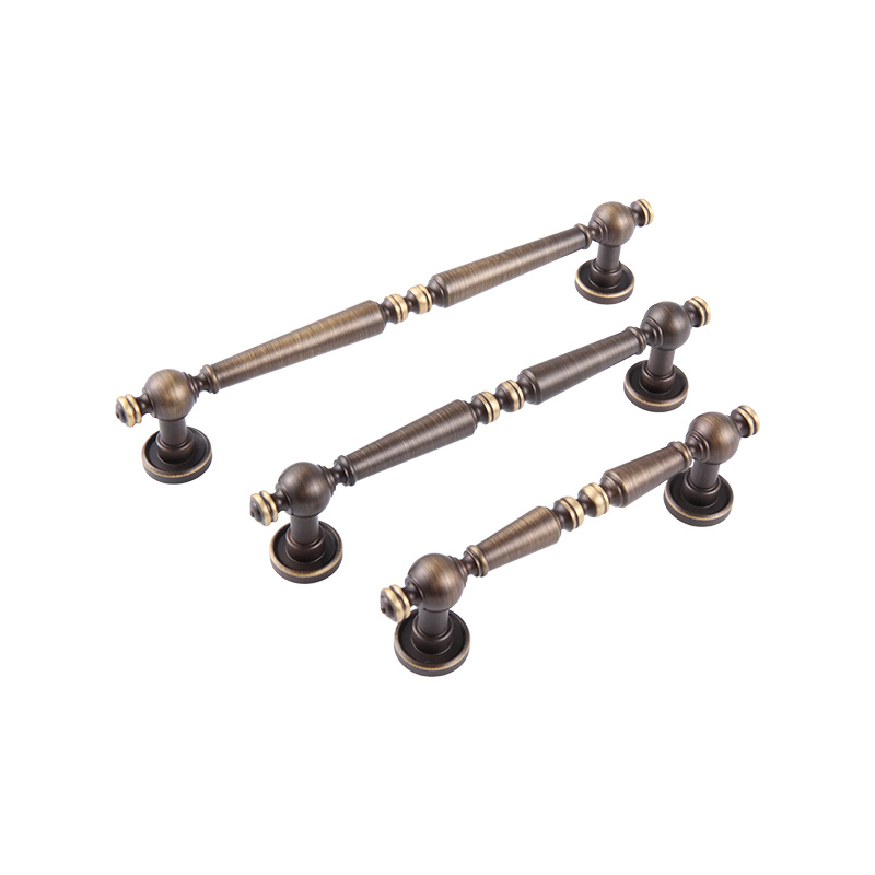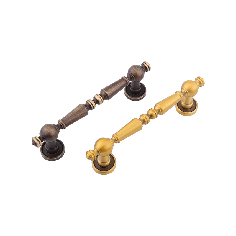 8415 Fransk bronsehåndtak Retro møblerskap Dørskap garderobehåndtak er et klassisk og rikt møbler i retro -stil. Det brukes vanligvis på skuffer, garderober, skap og andre møbler, og legger til et elegant og klassisk utseende på møblene. pust. Denne typen håndtak er vanligvis laget av messing, og overflaten behandles med en spesiell prosess for å gi den et bronseutseende. Det er ikke bare vakkert og elegant, men også fullt av spor av tid, noe som gir folk en følelse av fred og ro. Utformingen av dette håndtaket viser designstilen til franske bronsehåndtak. De samlede linjene er glatte og krumningen er vakker, full av retro og romantisk atmosfære. De fleste av formene tar i bruk en avrundet design, med delikat tekstur og behagelig håndfølelse, noe som gir folk en følelse av ro og komfort, og integrerer perfekt atmosfære i hjemmet.