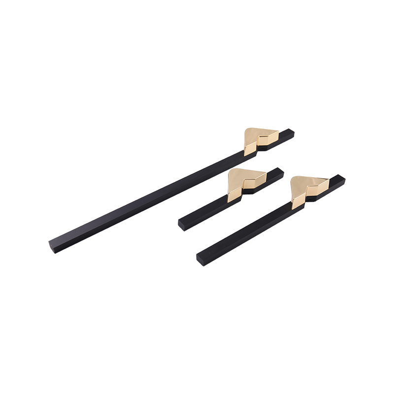 A06 sinklegering moderne enkel asymmetrisk garderobe dørhåndtak. Sinklegering er hovedmaterialet i håndtaket, og gir god styrke og korrosjonsmotstand. Den elektroplifiserende prosessen forbedrer utseendet til håndtaket ytterligere. Gjennom elektroplatering er metalloverflaten dekket med et tynt lag metall eller legering, noe som forbedrer håndtakets korrosjonsmotstand samtidig som den gir den ønskede fargen. Tre farger - svart gull, gullgrå og svart grå - er tilgjengelig for deg å velge mellom, i henhold til dekorasjonsstil og personlige preferanser. I tillegg gir vi en rekke størrelsesalternativer for å imøtekomme behovene til forskjellige møbler.