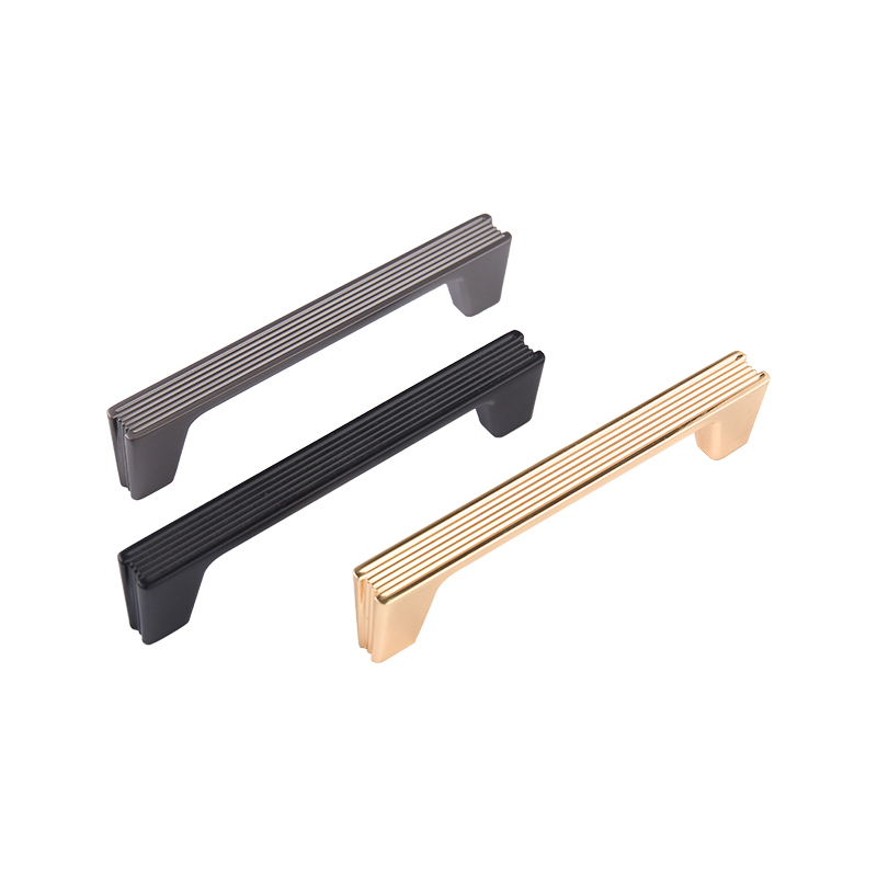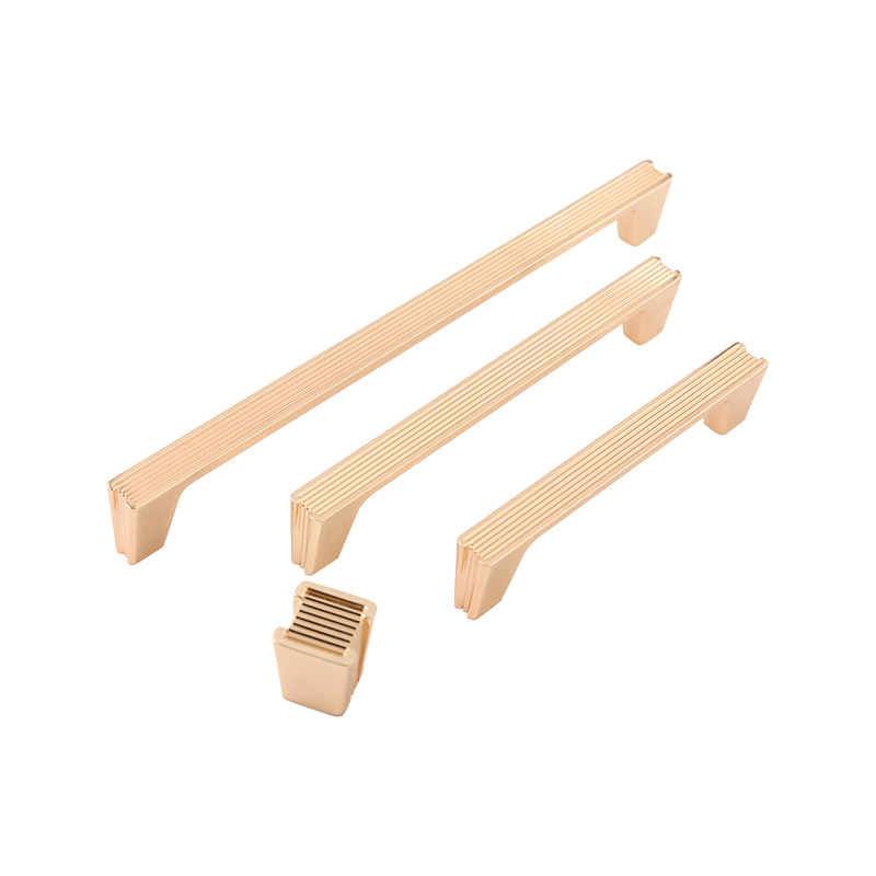 K619 sinklegering Moderne enkel lys luksus garderobe skuffhåndtak. Sinklegeringshåndtaket har egenskapene til høy styrke, holdbarhet og elegant tekstur, og kan være godt farget under elektroplatering. I tillegg til den sterke duktiliteten, kan den brukes til å lage forskjellige former for håndtak. Dette materialet har sterk hardhet og korrosjonsmotstand, er vakkert og har en solid tekstur. Det gir bekvemmelighet, skjønnhet og sikkerhet for byggematerialer som møbler og skapdører. Den fasjonable brytermodus gjør det til et tilbehør av høy kvalitet. Den har holdbarhet og en elegant tekstur, flerlags elektropletterende prosessteknologi, flere farger og spesifikasjoner, sterk materialhardhet og korrosjonsmotstand, vakkert utseende og en solid tekstur.