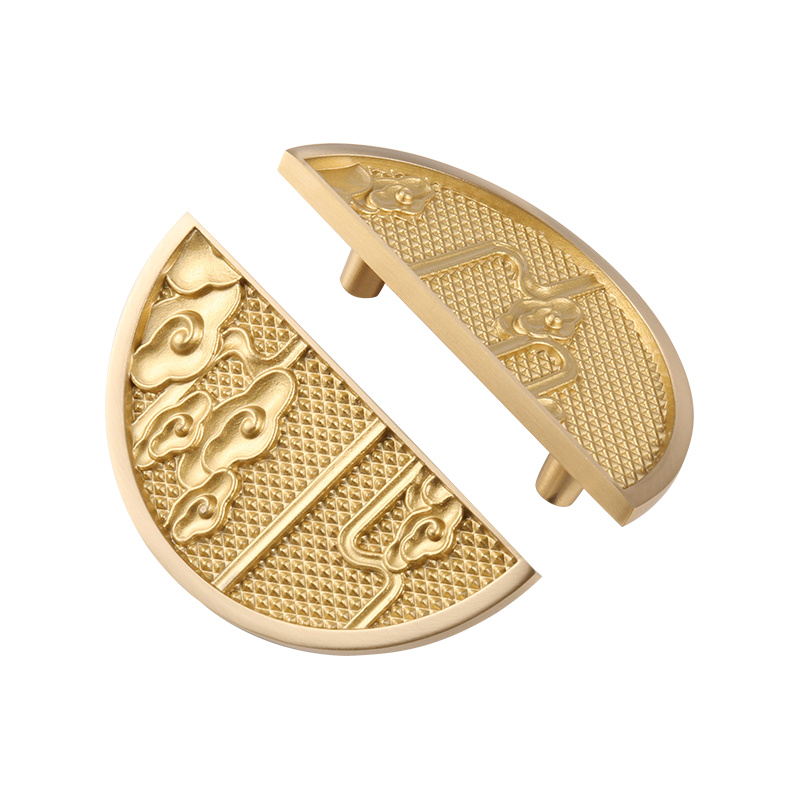 Xiangyun-3 All-kobber Ny kinesisk stil Xiangyun-kabinettdørhåndtak er laget av messing av all-kobber og har utmerket korrosjonsmotstand og oksidasjonsmotstand. Gull er designet med gull, og kan ikke bare gi luksus og eleganse til møbler, men også forbedre stilen og smaken på hele hjemmeplassen. De gyldne håndtakene vil avgi en sjarmerende glans under lyset, og øker rommet og komforten i rommet. Det er et møbeltilbehør med høy følelse av kvalitet og design, og viser utmerket ytelse når det gjelder materiale, håndverk og design. Det kan gi en følelse av elegant og raffinement til møbler, gi et unikt preg på hjemmeplassen og gjøre hele plassen mer raffinert og smakfull.